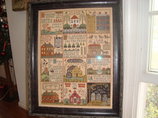 My first little project is a very sweet little mystery sampler that was presented in nine parts last fall by Paulette Stewart of Plum Street Samplers, called Mary's Sampler. To be exact, I am doing Mary's Sampler II, which was stitched on black fabric. Because I had so much going on last fall, I kitted and started Mary, but never quite got going on her. So, she went on my 2014 "to be stitched" list. I work on her on Sundays, in the early afternoon , when the light is good. Stitching on the black can be quite tricky. Today is Sunday, so Mary and I will be getting together this afternoon, and I plan to finish parts 7&8, which will leave me two Sundays in March, and I plan to have her finished! An actual finish...it's been a long time since I've had one. My good friend Sherri Berkman of Total Framing framed Paulette's Mary, and Sherri will be framing mine. I used the called for Lakeside Linens "Black Forest", and all of the called for threads.